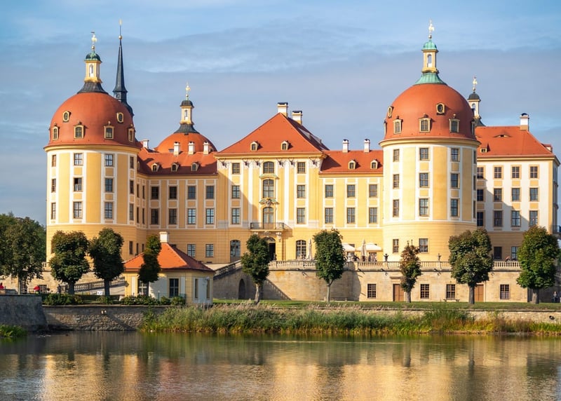 5. Schloss Moritzburg Schloss Moritzburg ist ein Barockschloss aus dem 18. Jahrhundert, das in der Nähe von Dresden liegt. Es ist von einem wunderschönen See und Park umgeben und besonders beliebt, seit es im tschechischen Märchenfilm "Drei Haselnüsse für Aschenbrödel" als Kulisse zu sehen war.