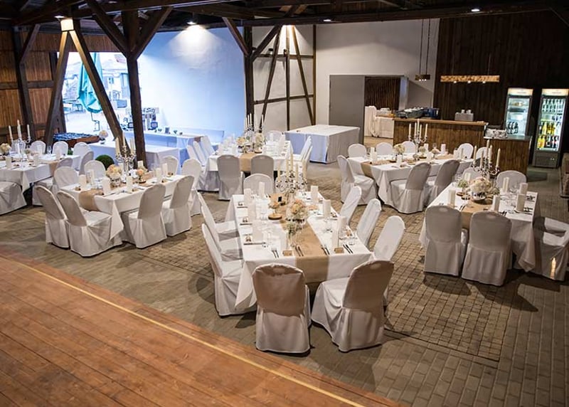 • Weingut Vollmayer in der Nähe von Stuttgart: Hier schlagt ihr gleich zwei Fliegen mit einer Klappe, denn ihr habt Weingut und romantische Scheune in einem. Mit bis zu 120 Gästen könnt ihr hier einen atemberaubenden Blick auf die Landschaft genießen.