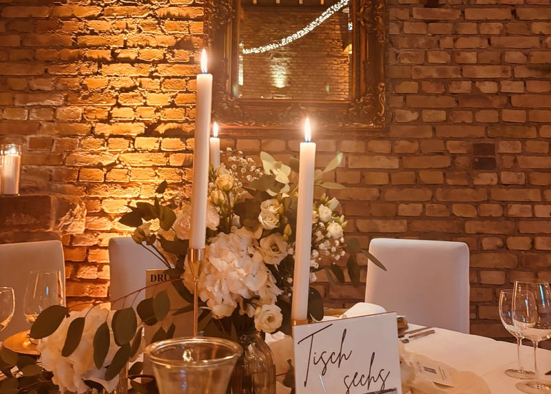 Dekoration Um eine märchenhafte Atmosphäre zu schaffen, solltet ihr Elemente wie Blumen, Kerzen oder Lichterketten einbeziehen. Wählt ein Farbschema, das zu eurem Thema passt, z. B. sanfte Pastelltöne, Gold oder Silber.