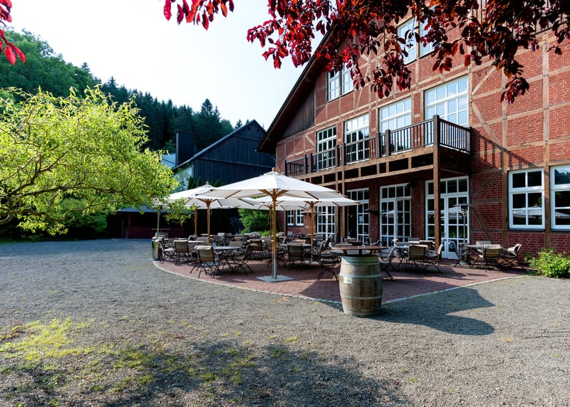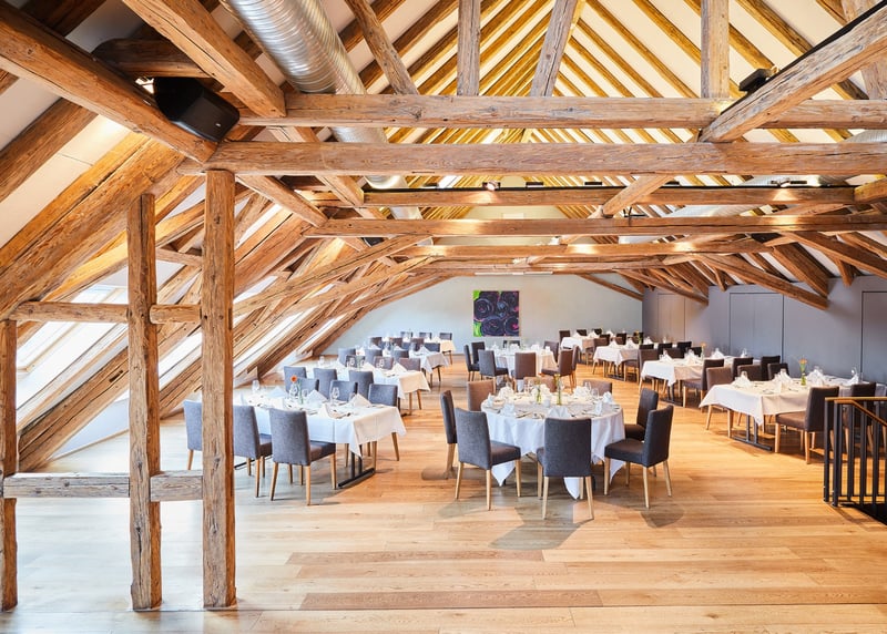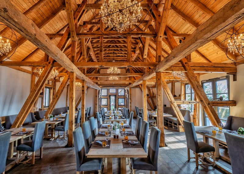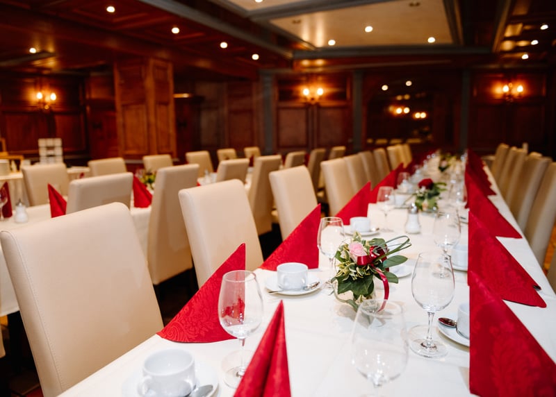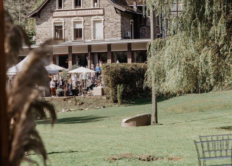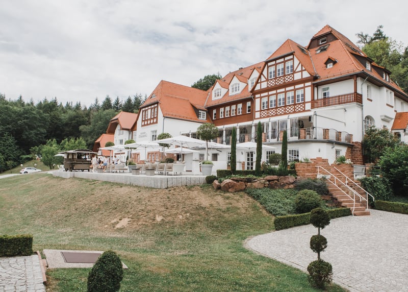 In puncto Unterkünfte bietet Hessen ebenso viele Möglichkeiten – und zwar für jedes Budget. In größeren Städten wie Frankfurt, Darmstadt oder Kassel könnt ihr aus zahlreichen Hotels wie dem H4 Hotel Kassel oder dem Hilton Frankfurt City Centre wählen, während sich in ländlichen Regionen Ferienwohnungen oder kleinere Hotels wie das Mein Bahnhof in Rüdesheim am Rhein oder das Romantik Hotel Zum Stern in Bad Hersfeld anbieten. Viele Locations wie Gutshöfe oder Weingüter verfügen über eigene Unterkünfte, was besonders praktisch sein kann, wenn eure Gäste von weiter her kommen.