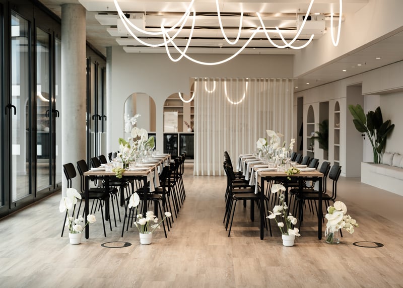 Berücksichtigt die Location Die Größe und der Grundriss eures Veranstaltungsortes haben einen großen Einfluss auf die Sitzordnung. Ihr solltet eine genaue Vorstellung davon haben, wie viele Tische ihr braucht und wie sie angeordnet werden sollen.