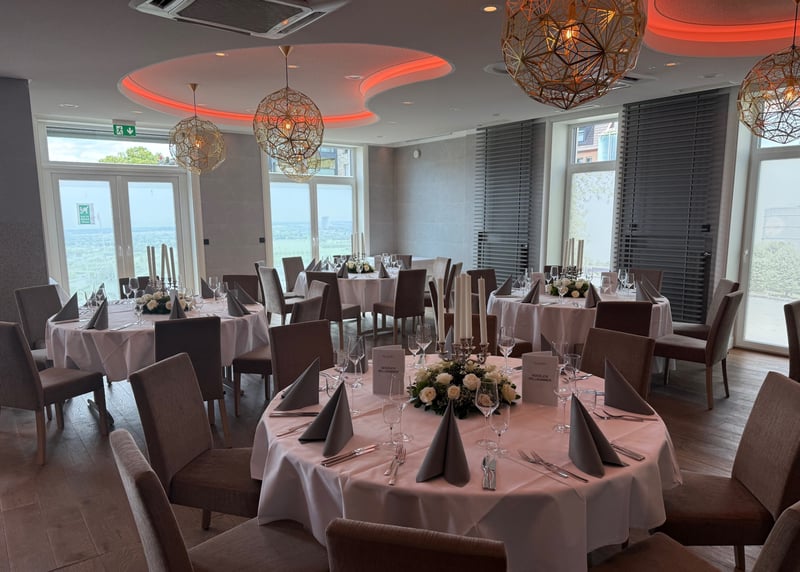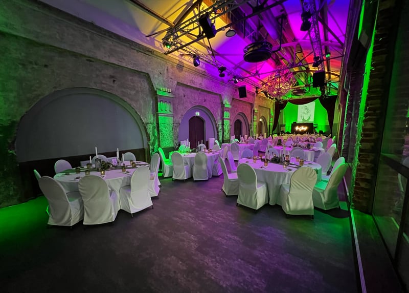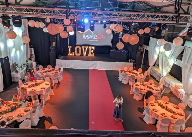 Falls ihr einen besonders modernen und einzigartigen Veranstaltungsort bevorzugt, könnt ihr das Gasometer Oberhausen exklusiv für eure Hochzeit mieten. Der hoch aufragende Gasspeicher bietet einen atemberaubenden Blick auf die Stadt und Platz für bis zu 500 Gäste.