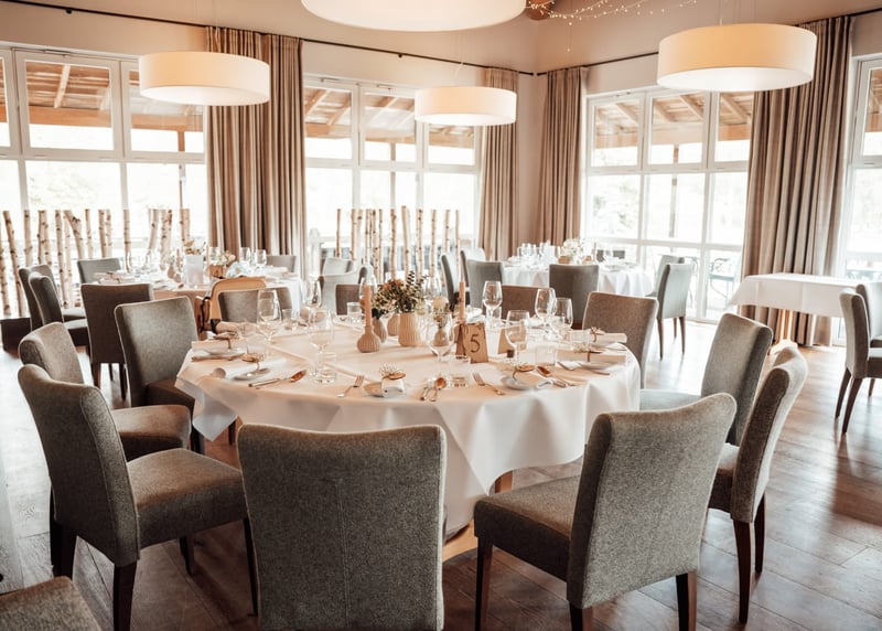 Zu den beliebten lokalen Gerichten, die bei einer Hochzeit als Hauptspeise serviert werden, gehören z. B. ein Fränkisches Hochzeitsessen (Rindfleisch mit Meerrettich, Bandnudeln und Wildpreiselbeeren), Schwäbischer Zwiebelrostbraten oder auch Fischvarianten wie gegrillter Lachs. Vergesst nicht, gegebenenfalls auch vegetarische und vegane Speisen anzubieten. Beliebt sind z. B. Gerichte wie Linsencurry, Lupinengeschnetzeltes oder Spinat-Crêpes mit Süßkartoffelfüllung. Als Nachtisch bieten sich traditionelle Speisen wie Schwarzwälder Kirschtorte, Apfelstrudel oder auch Klassische Herrencreme an.