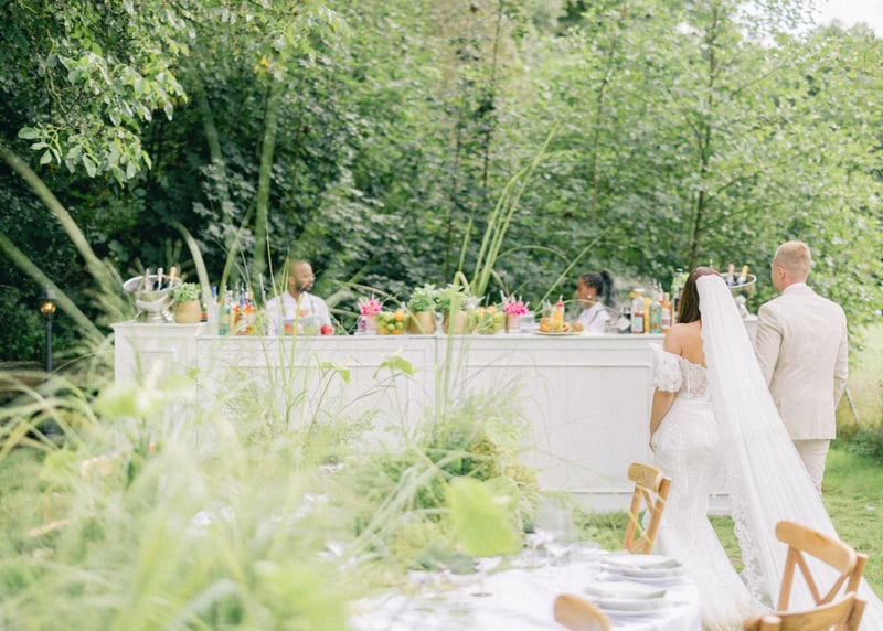 Catering: Arbeitet mit einem Caterer zusammen, der Erfahrung mit Veranstaltungen im Freien hat und geeignete Serviergeräte und Catering-Optionen für eine Hochzeit im Freien anbieten kann.