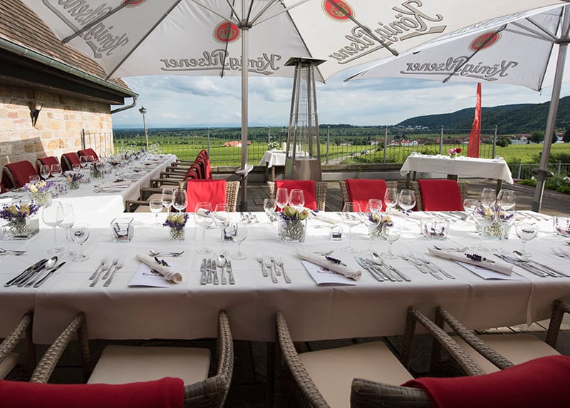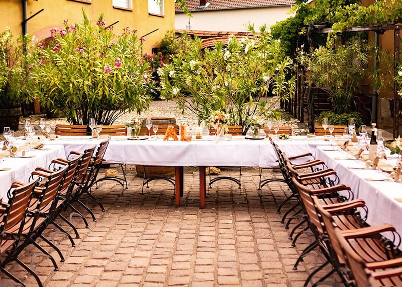 Ihr wollt euch unbedingt zwischen Weinreben das Ja-Wort geben? Dann kommt ihr an Netts Landhaus bei Neustadt an der Weinstraße nicht vorbei. Am Rande des Pfälzer Walds feiert ihr hier mit bis zu 80 Gästen mit Blick über die Pfälzer Weinberge bis hin zur Rheinebene. Nicht weit davon entfernt liegt das wunderschöne Weinhaus Motzenbäcker in Ruppertsberg, in dem ihr an eurem Hochzeitstag exklusiv die Ruhe und Abgeschiedenheit – und hervorragenden Wein – genießen könnt. Noch exklusiver wird es im BoudierKoeller in Stetten, einem modernen Boutique-Weingut. Auch hier gibt es übrigens ausgewählte Übernachtungsmöglichkeiten.