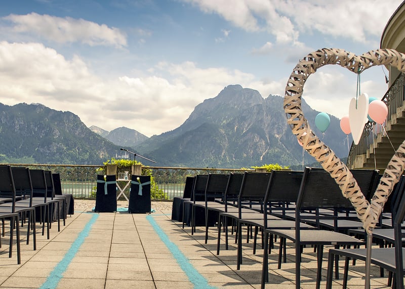 Auch der Tegernsee in Bayern ist ein fantastischer Ort f�r eine luxuri�se Outdoor-Hochzeit. Luxushotels wie das Althoff Seehotel �berfahrt bieten euch nicht nur atemberaubende Ausblicke auf den See, sondern auch erstklassigen Service und wundersch�ne Au�enbereiche f�r eure Zeremonie.