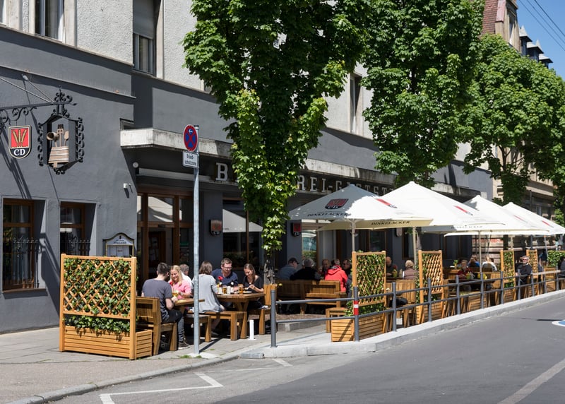 • Brauereigaststätte Dinkelacker: Rustikaler Charme mit Kupferkesseln und Biertischen, authentische Feierlocation mit Brauhaus-Flair
