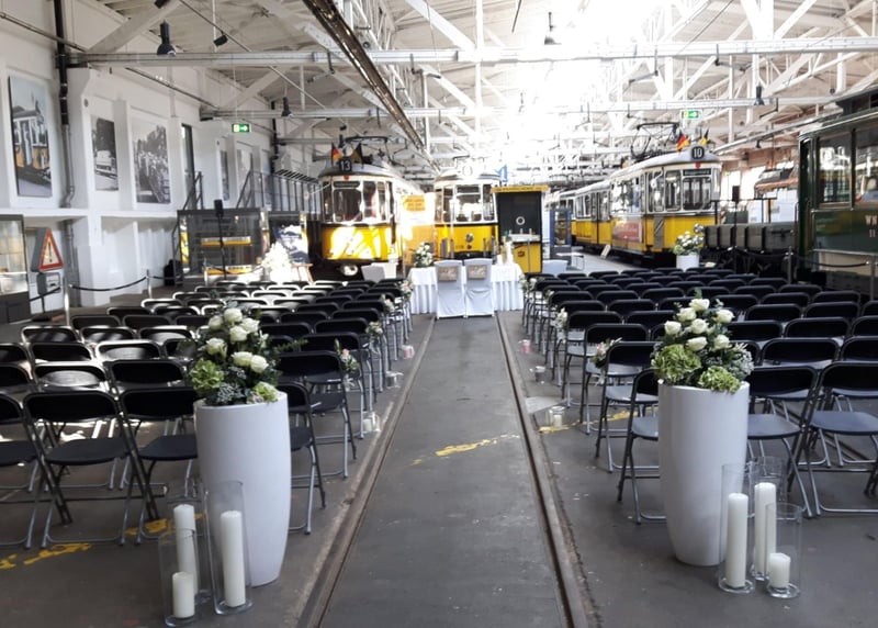 • Straßenbahnmuseum Stuttgart: Ungewöhnliche Hochzeitslocation mit Industriecharme, Feiern zwischen historischen Straßenbahnen – ideal für Paare, die etwas Einzigartiges suchen