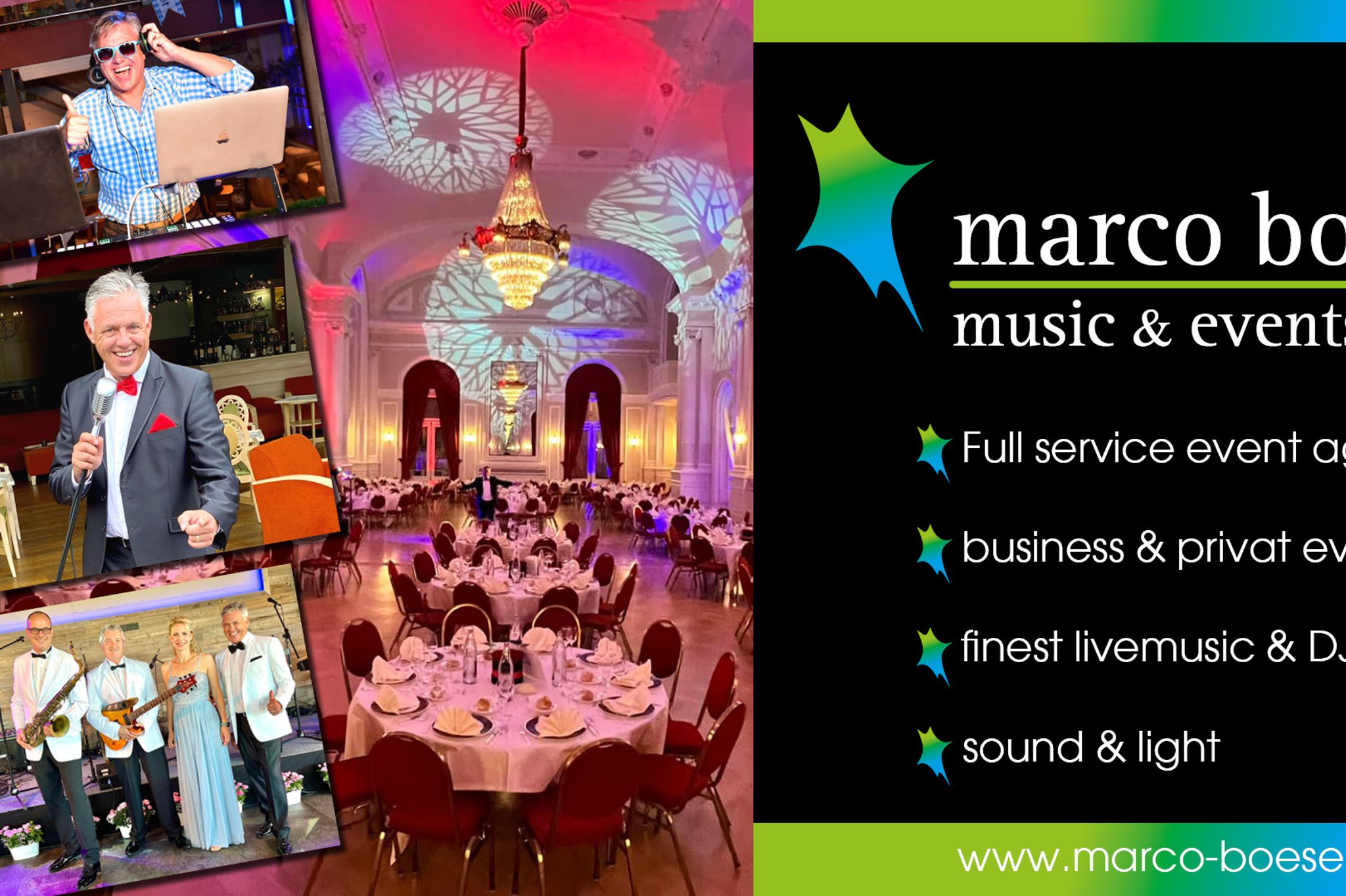 Marco Boesen : Sänger - Pianist - DJ - Band - Alleinunterhalter - Duo - Trio Einfach die perfekt passende Musik für jeden Anlass... Cocktail Pianist, 1 Mann Party Band und DJ Entertainment. Musikalische Gestaltung von Trauungen. Ganz gleich, ob es sich um exklusive Firmenveranstaltungen oder Privatanlässe handelt, Marcos riesiges Repertoire und sein unverkennbares Talent für die richtige Musik zum passenden Zeitpunkt begeistern jedes Publikum. Dabei gehören elegante Loungemusik und die Highlights der vergangenen Jahrzehnte genauso zum Programm wie aktuelle Charts, Partyklassiker und Schlager. Mehr als 35 Jahre Erfahrung lassen jeden Auftritt zu einem einmaligen Erlebnis werden. Marco Boesen- wenn es mehr als nur "ein bisschen Musik" sein soll...