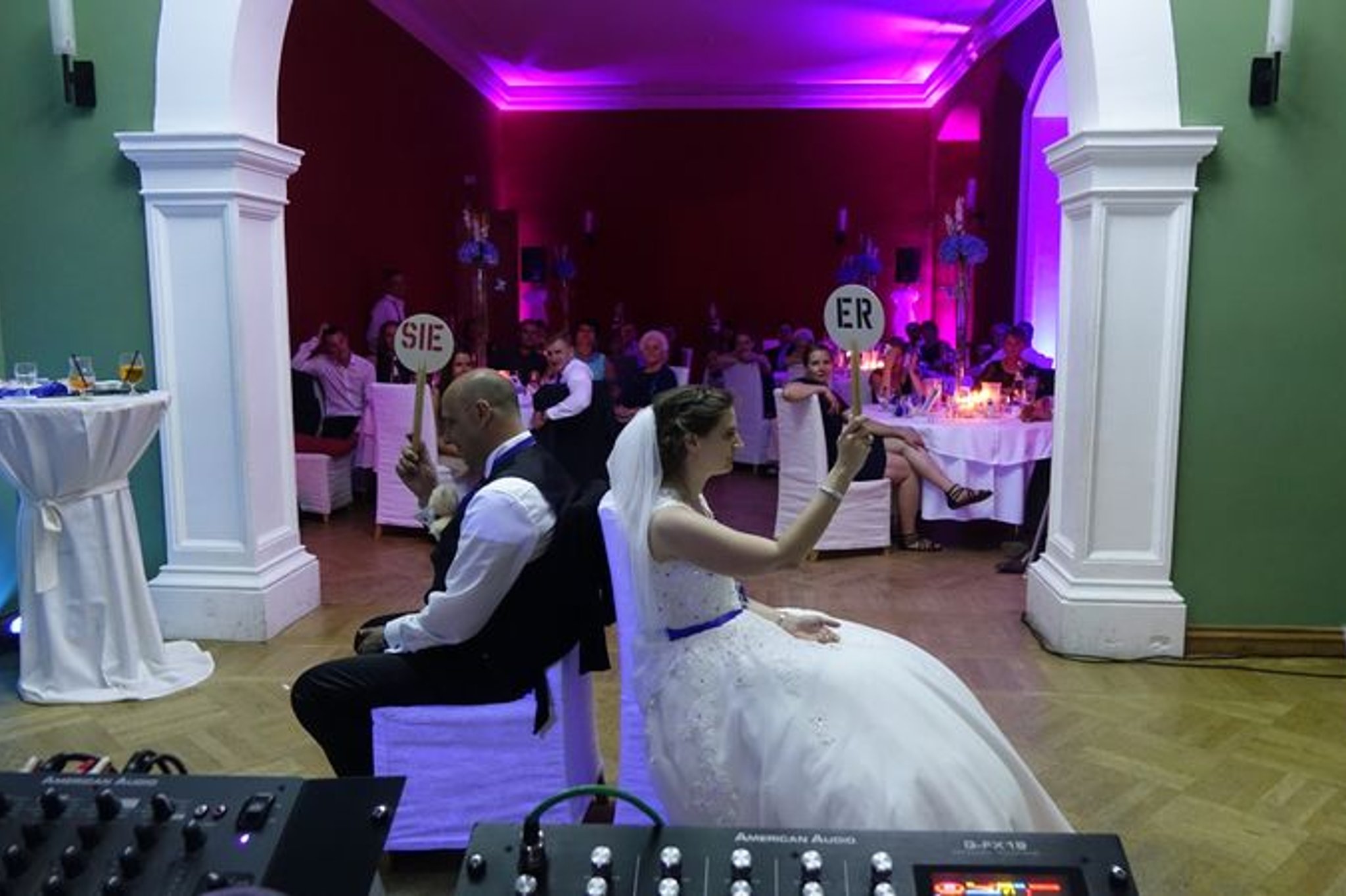 Unser Musikrepertoire reicht von den 50er,60er,70er,80er,90er,2000,2010erbis hin zu den aktuellen Charts. (Schlager, NDW, Rock-Pop, Discofox, R&B, Black-Soul, Funk, Indie, Reggae, Latin und vieles mehr. Für die passende Hintergrundmusik (Essen, Hochzeitstanz, Tortenanschnitt, Brautstraußwurf) können wir auf mein umfangreiches Repertoire von ruhigem Pop, Chillout, Lounge, Jazz und Soul zurückgreifen. Für Ansprachen der Gäste, Spiele oder Reden liegt selbstverständlich ein Funkmikrofon bereit. Auf Wunsch und Absprache mit dem Brautpaar, sage wir gerne den Hochzeitstanz, den Brautstraußwurf, die Buffetröffnung an.
