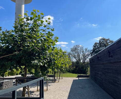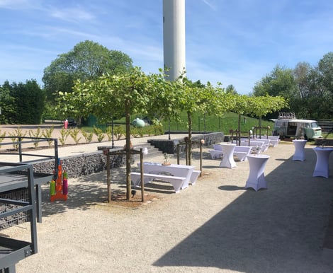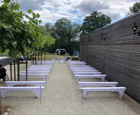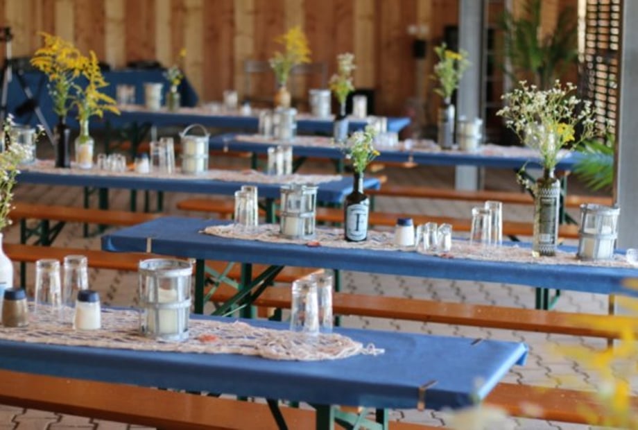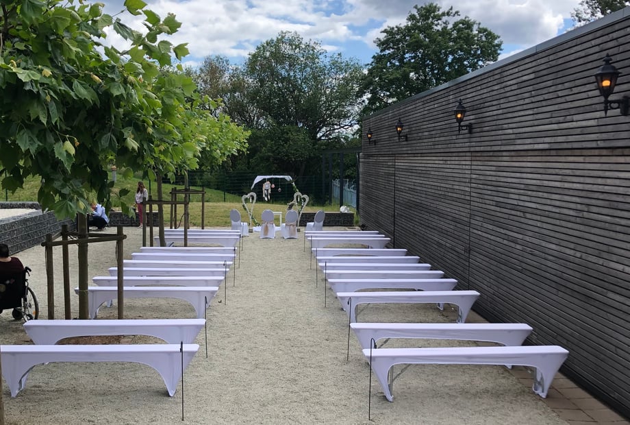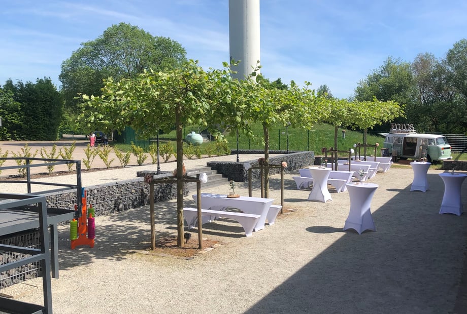 Der vorgelagerte Außenbereich mit feinem Kies und Bäumen sorgt für eine entspannte Atmosphäre, in der eure Gäste den Tag genießen können. Außerdem ist die gesamte Location barrierefrei – so können wirklich alle eure Liebsten unbeschwert mitfeiern.
