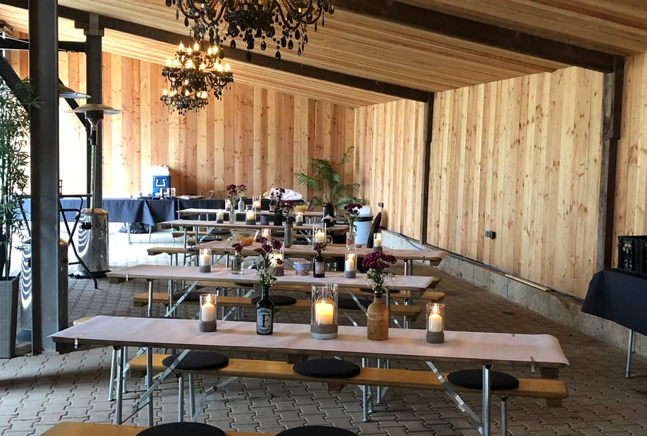 Die klare Architektur des Bergwerk-Event Holz bietet euch viele Möglichkeiten, eure Feier ganz nach euren Vorstellungen zu gestalten. Ein echtes Highlight ist der großzügige Holzpavillon. Dieser überdachte Teil des Aussenbereichs eignet sich ideal für den Sektempfang, eine Lounge-Ecke oder sogar eine freie Trauung.