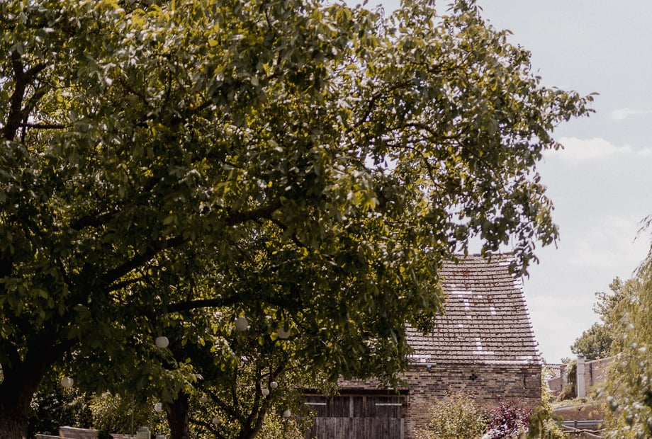 Jede Hochzeit war und ist etwas ganz Besonderes! Im Sommer beliebt sind die (standesamtlichen) Trauzeremonien auf der grünen Wiese unter Obstbäumen, anschließend geht es zum Sektempfang in den Garten. Danach heißt es Kaffee-Kuchen-Zeit im grünen Innenhof unterm Walnussbaum, wo nachmittags das gemütliche, ungezwungene Verweilen im Vordergrund steht. Zum Dinner geht es dann meist in die liebevoll dekorierte Festscheune, wo später auch die Party steigt. Doch auch in der lauen Sommernacht könnt ihr bei Lichterkettenzauber und Backsteinromantik im Hof am Feuerkorb chillen. So sieht eine entspannte Sommerhochzeit mit Party in Festscheune, Trauung auf der Obstwiese und Verweilen im grünen Hof bei uns aus.