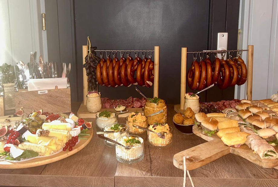 Kulinarisch setzen wir auf eine moderne Küche mit Fokus auf Qualität, Frische und Individualität. Ob Menü oder Buffet – alles wird auf eure Wünsche abgestimmt. Ergänzt wird das Angebot durch hausgemachte Desserts sowie flexible Getränkekonzepte, von Pauschalen bis zur individuellen Auswahl.