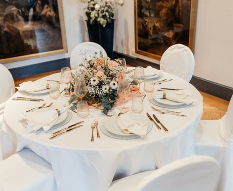 Für elegante Empfänge und festliche Feiern, wie Hochzeiten, Jubiläen oder Geburtstagsfeste, bietet sich der prachtvolle Festsaal an, der mit einem bezaubernden Gartensalon und einer großzügigen Freiterrasse verbunden ist. Nach der Trauung können Sie mit Ihren Gästen auf der Terrasse anstoßen und den atemberaubenden Blick auf den idyllischen Schlosspark genießen.