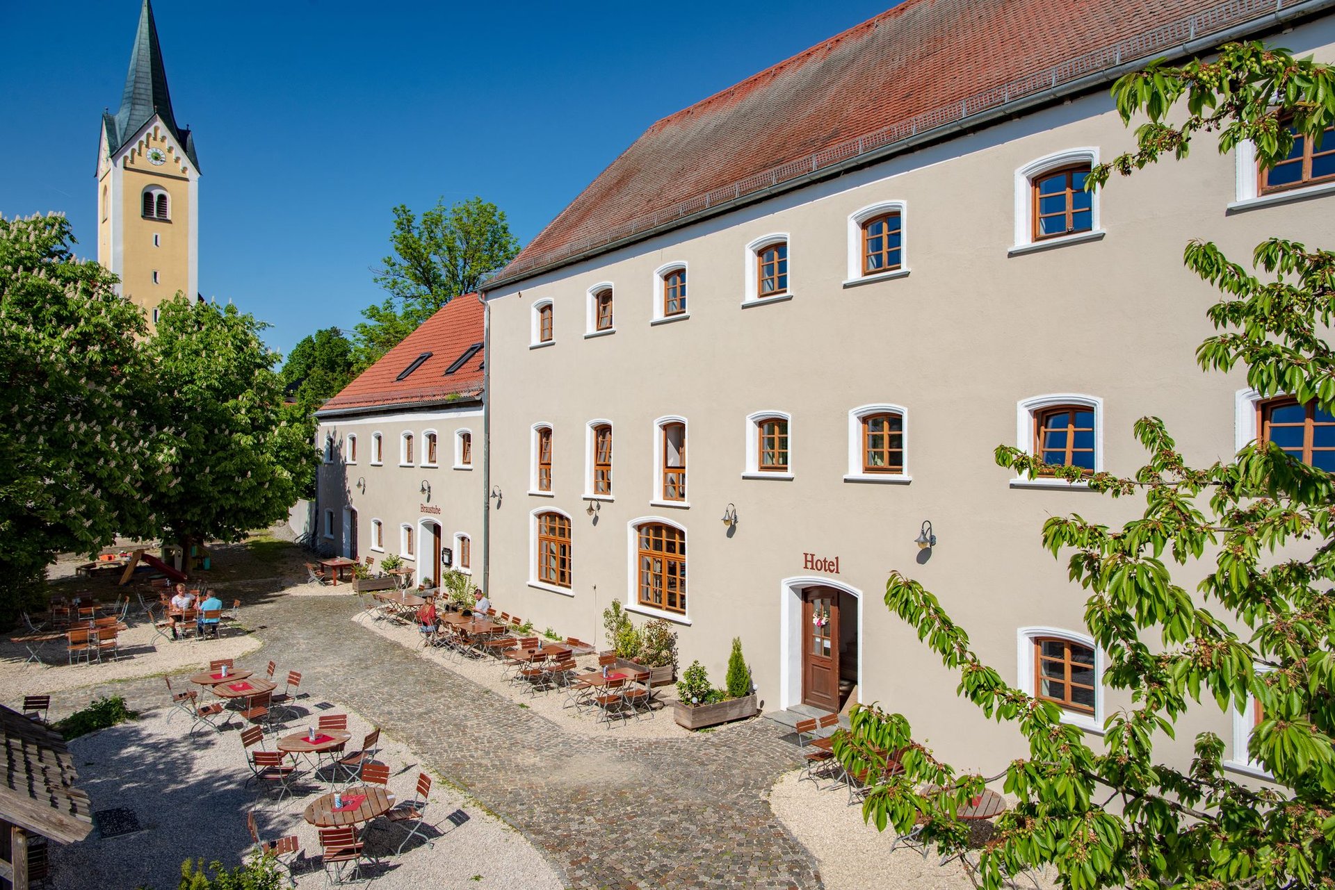 Als besonderes Highlight übernachten Braut und Bräutigam in einer der exklusiven Hochzeitssuiten des Hotels. Für Ihre Gäste stehen 75 komfortable Zimmer bereit, sodass alle entspannt vor Ort bleiben können. Die zentrale, aber ruhige Lage des Hotels – in einer ehemaligen Kunstschmiede – macht es zur idealen Hochzeitslocation in Regensburg.