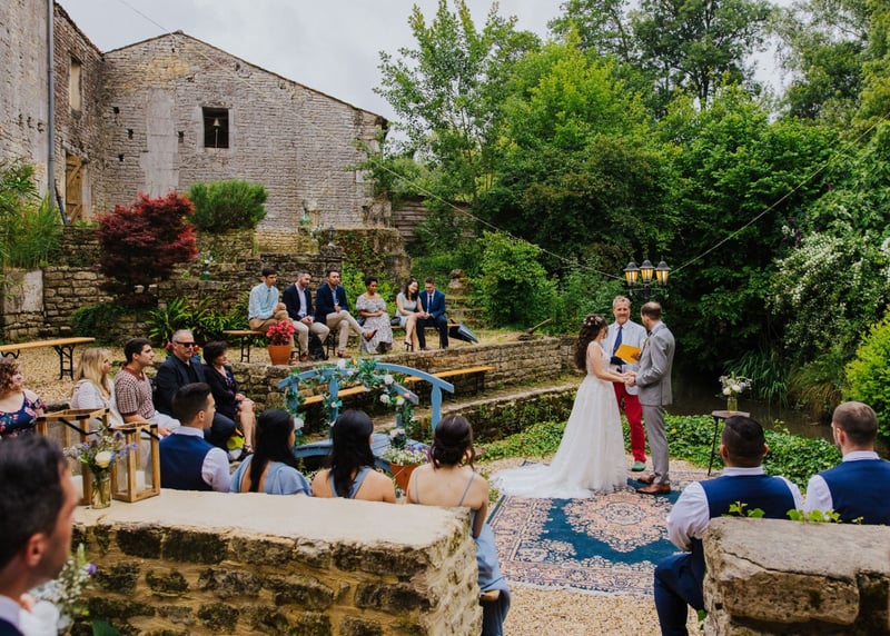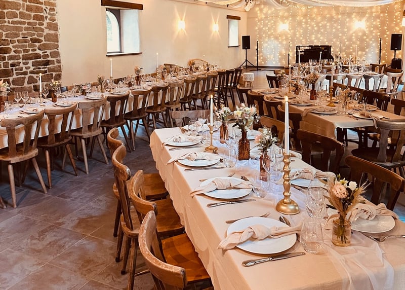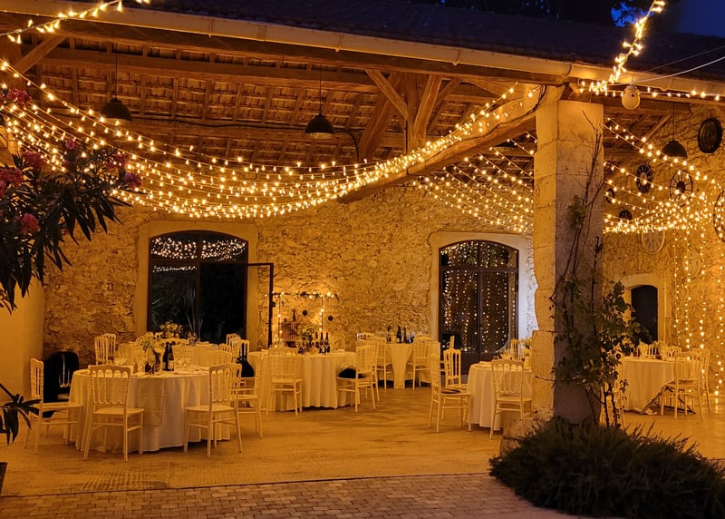 Services and amenities offered at rustic wedding venues in France may vary depending on each establishment. However, most rustic wedding venues offer spaces for the ceremony and reception, rooms to get ready, sound and lighting equipment, tables and chairs, and catering options.
