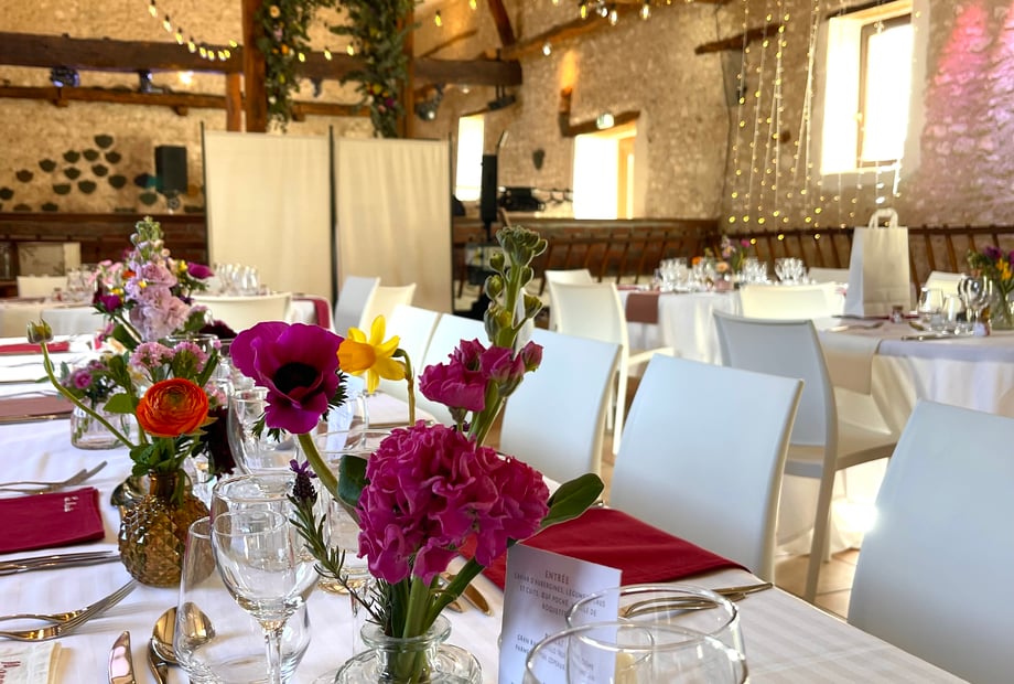 La Bergerie peut accueillir jusqu'à 80 personnes assises (possibilité jusqu’à 100 personnes si disposition des tables du côté DJ également).