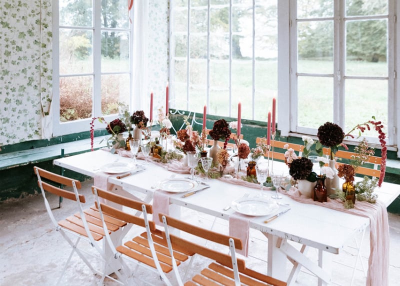 Le thème le plus tendance est l'élégance rustique, qui allie la grandeur d'un château ou d'une propriété prestigieuse à la simplicité de la campagne.