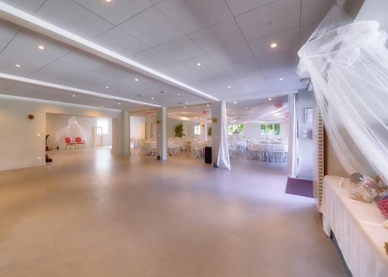 Une salle de mariage romantique devrait être élégante et intime. Les détails tels que les fleurs, les bougies, les tissus et les meubles délicats peuvent ajouter à l'atmosphère romantique. Des couleurs comme le violet, le rose et le rouge peuvent également contribuer à l'ambiance romantique.
