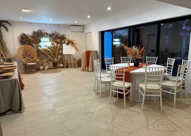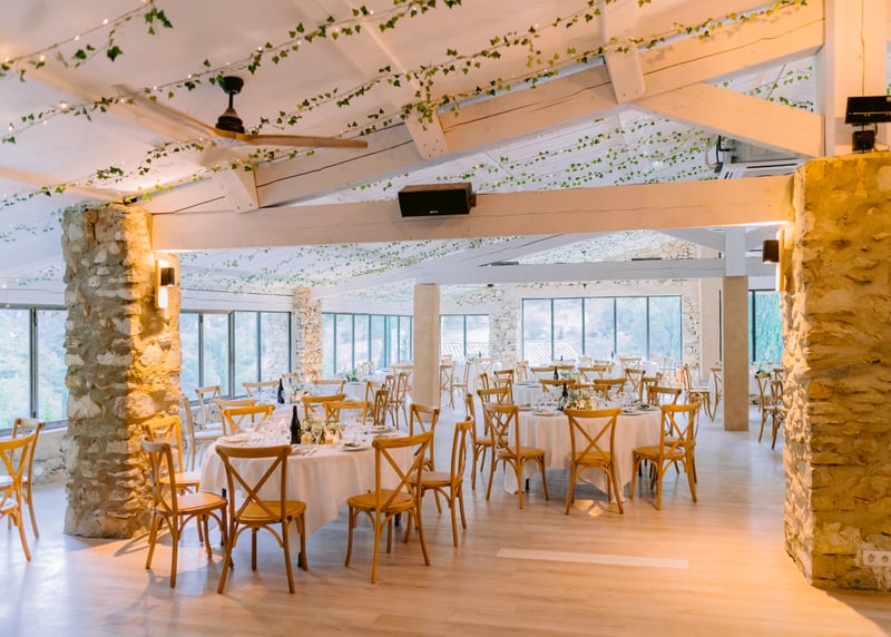 Sans oublier l’emplacement de la salle et sa vue imprenable sur la mer, la montagne ou les vignobles, ce qui ajoute un charme spécial au décor.