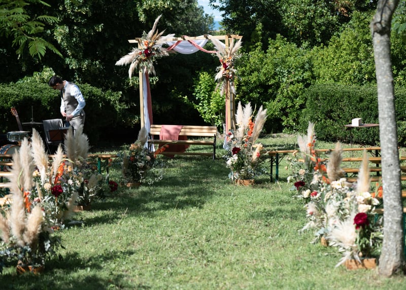 Mariages bohème avec herbe de la pampa, tons ocre et ambiance décontractée gagnent du terrain.