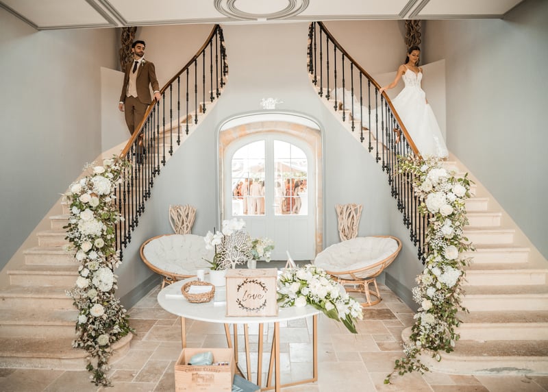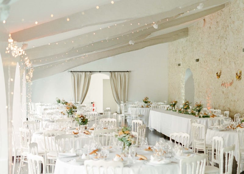 Les prix d’une salle de mariage en Gironde varient entre 2 500 et 7 000 euros pour une location d'un week-end. Si l'on ajoute le service de traiteur et les extras, on peut atteindre un total de 10 000 à 15 000 euros, ce qui reste bien plus économique qu’un mariage à Paris ou en Provence.