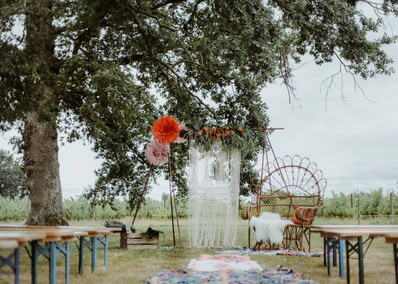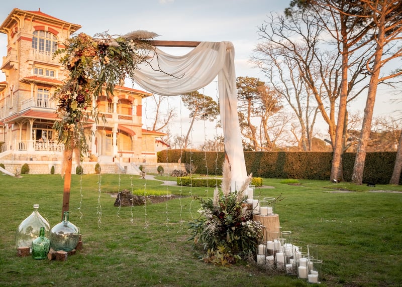 Les mariages bohèmes sont l’une des tendances phares de ces dernières années. Vous rêvez de couronnes de fleurs séchées, de danse pieds nus, de décoration en macramé et de meubles vintage ? Le Domaine d’Arès vous offre l’ambiance champêtre, bohème et romantique que vous recherchez à quelques pas du bassin d’Arcachon. Idéal pour se dire “oui” les pieds dans le sable ! Le superbe Domaine de la Rousserie se prête également aux mariages bohèmes chic, avec ses intérieurs romantiques et ses vastes jardins.