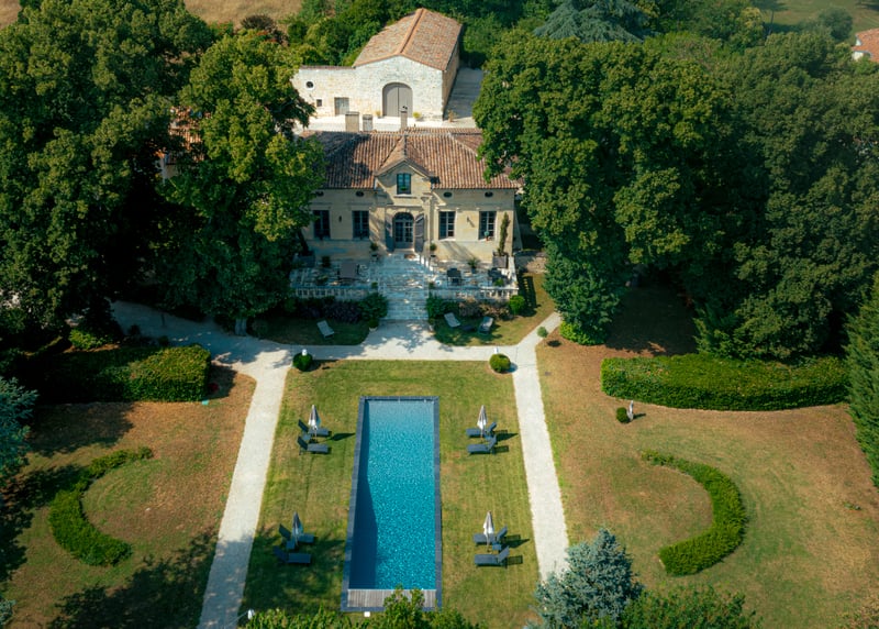 Autre château d’exception, le Château Couffins, à Asques, est aussi élégant à l’intérieur qu’à l’extérieur. Le long de la Dordogne, ce lieu exsude la sérénité, de ses jardins luxuriants à son architecture. Si vous souhaitez prolonger les festivités, il compte 9 chambres et une belle piscine.