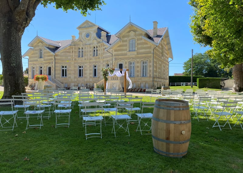 Parlons climat. La Gironde bénéficie d'un climat océanique doux, ce qui signifie “ni trop chaud, ni trop froid, et excellent pour le terroir”. Vous échapperez donc aux températures négatives, mais qui dit “océanique” dit “pluie”. Prévoyez donc un espace intérieur de repli, quelle que soit la saison de votre mariage.