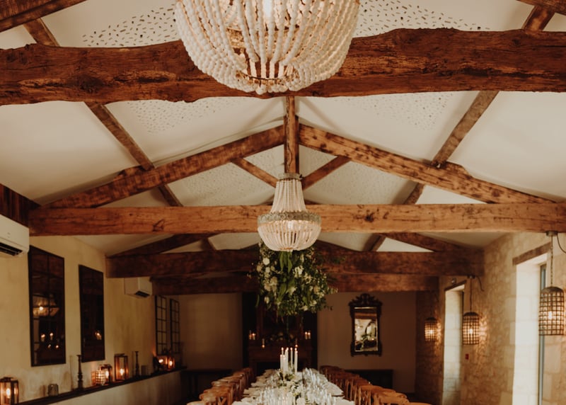 Si vous rêvez d’un mariage typiquement girondin avec vue sur les vignobles, cave et château, commencez par le Château Saint Ahon. À moins de 25 minutes de Bordeaux, il a tout pour plaire : des vignes, du charme, un chai à barriques, une belle salle aux poutres apparentes et de superbes possibilités de photos. Il est idéal pour les couples qui recherchent toute l'élégance française sans les prix parisiens.