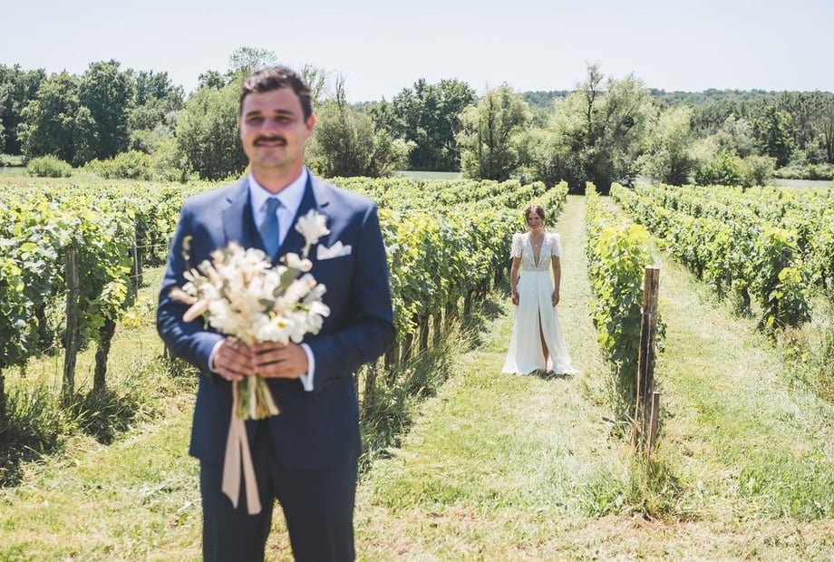 Les extérieurs du domaine, avec les vignes, les étangs et la forêt, offrent de nombreux décors naturels et élégants pour vos photos.