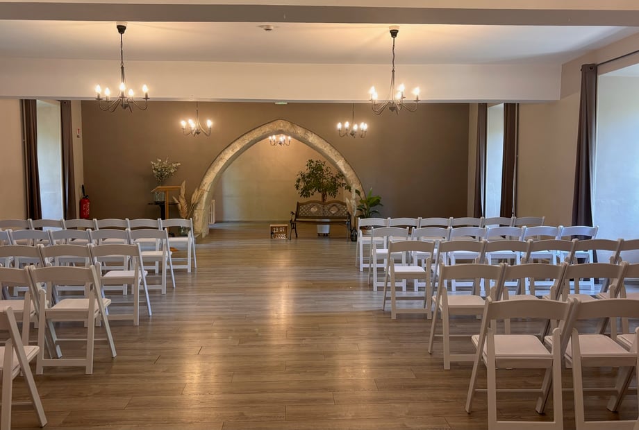 Aux portes de la Drôme et au pied du Vercors, le Château des Anges, ancienne Abbaye Royale Cistercienne du XIVᵉ siècle, offre un cadre romantique et raffiné pour votre mariage. Deux salles élégantes accueillent jusqu’à 110 personnes assises. À l’extérieur, profitez d’une cour ombragée, d’un vaste parc paysager, d’un espace cérémonie laïque et d’une piscine pour sublimer votre réception.