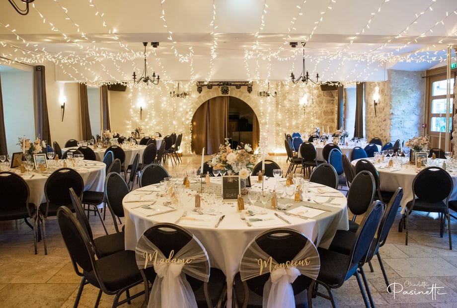 Le plus beau mariage célébré au Château des Anges était une soirée magique d’été, avec une cérémonie laïque romantique dans notre parc arboré illuminé de guirlandes lumineuses, suivie d'un dîner élégant dans nos salles historiques. Le moment fort ? Un feu d'artifice féerique qui a émerveillé les mariés et leurs invités ! ✨