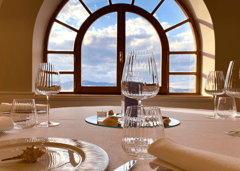 The restaurant, which becomes a real taste experience in a natural and never pretentious way, has an elegant setting with 90 seats, with a splendid terrace from which you can enjoy the wonderful panorama of the Strait, and a private environment...