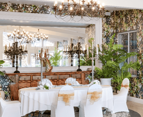 Choose the perfect spot to celebrate your love. Exchange vows in the charming stone chapel, designed with Italian tiles and panoramic lake views for an intimate atmosphere. If you prefer the outdoors, the meticulously maintained gardens or the lake’s edge offer breathtaking settings for your ceremony. When it’s time to celebrate, The Conservatory provides an elegant reception space that’s already beautifully styled—meaning less fuss and more time to enjoy your meal with close friends and family.
