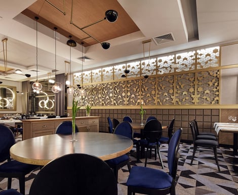 - Restauracja Mozaika: Idealna na wesele do 94 osób. Wnętrze inspirowane stylem art déco, ze złotymi zdobieniami, tworzy elegancką i wyrafinowaną oprawę. Bezpośrednie wyjście do ogródka to dodatkowa atrakcja, która pozwoli Wam i Waszym gościom cieszyć się świeżym powietrzem podczas uroczystości.