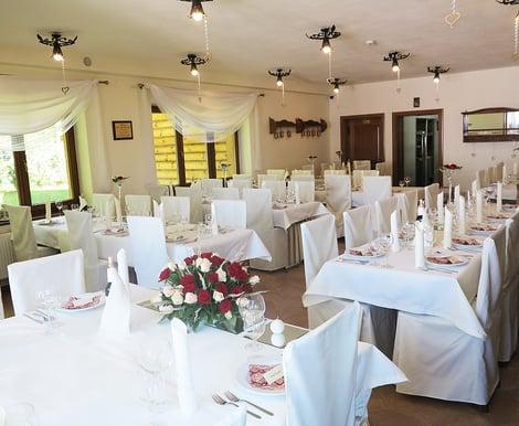 Dwór Karolówka specjalizuje się w organizacji kameralnych i klimatycznych wesel. Do dyspozycji macie dwie sale, każda mieszcząca do 60 osób. Co ważne, jeśli Wasze wesele liczy ponad 40 gości, sala będzie dostępna wyłącznie dla Was – bez dodatkowych opłat. Wnętrza restauracji odzwierciedlają kulinarną tradycję Podhala, a profesjonalna obsługa w regionalnych strojach zadba o każdy szczegół Waszej uroczystości.