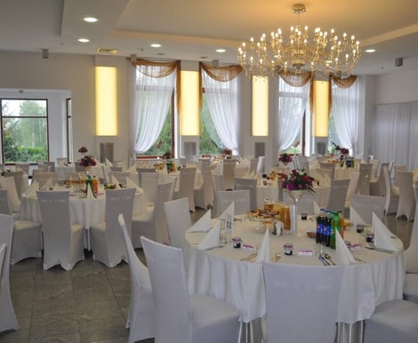 W Hotelu Dyminy znajdziecie przestronną, klimatyzowaną salę bankietową, która pomieści do 300 osób – to świetna wiadomość, jeśli planujecie duże wesele. Nowoczesny wystrój sali stanowi doskonałą bazę do stworzenia wymarzonej aranżacji, która podkreśli charakter Waszej uroczystości. Dodatkowo, do dyspozycji jest urokliwa wiata grillowa – idealna na poprawiny lub letnie wieczory z gośćmi.