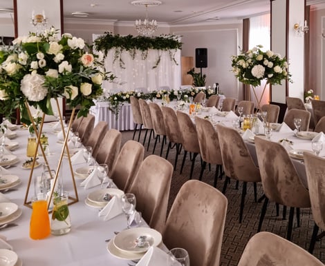 Hotel Kopczyński dysponuje trzema klimatyzowanymi salami bankietowymi, które razem pomieszczą do 180 osób. Każda sala została zaprojektowana z dbałością o detale, tworząc przytulną i stylową atmosferę – idealną zarówno na kameralne przyjęcia, jak i większe wesela. Dzięki różnorodności przestrzeni łatwo dopasujecie miejsce do swoich potrzeb i liczby gości.