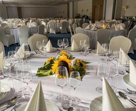 Nasza elegancka sala bankietowa to serce obiektu – jej powierzchnia można elastycznie dostosować od 95 m² do aż 475 m². Dzięki temu zorganizujecie tu zarówno kameralne przyjęcie rodzinne, jak i huczne wesele dla nawet 500 gości. Klimatyzowane wnętrza z dostępem do naturalnego światła zapewniają komfort i przyjemną atmosferę przez cały dzień i wieczór. Sala daje Wam pełną swobodę aranżacji, by idealnie odzwierciedlić Waszą wizję i styl.