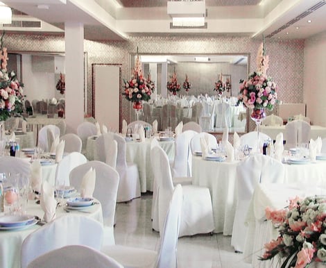 Do dyspozycji gości jest elegancka, klimatyzowana Sala Bankietowa, mieszcząca do 180 osób. Jasne, przestronne wnętrze z efektownym oświetleniem LED i wyjściem na taras pozwala na dowolną aranżację – zarówno przy stołach prostokątnych, jak i okrągłych. To idealne miejsce, by stworzyć magiczną oprawę Waszego wesela.