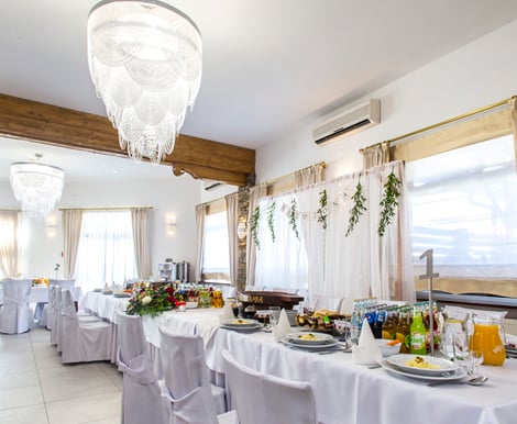 Hotel oferuje różnorodne przestrzenie, które można dostosować do charakteru Waszego przyjęcia – od dużych, hucznych wesel po kameralne spotkania w gronie najbliższych.
