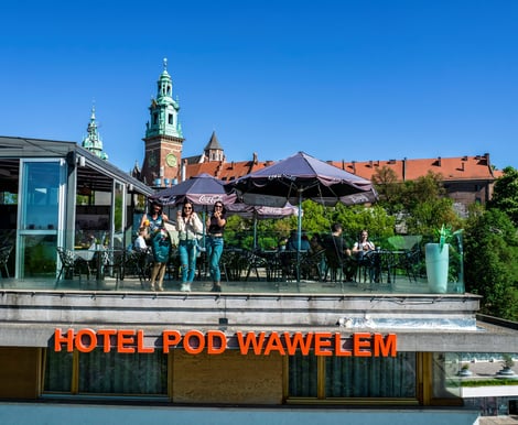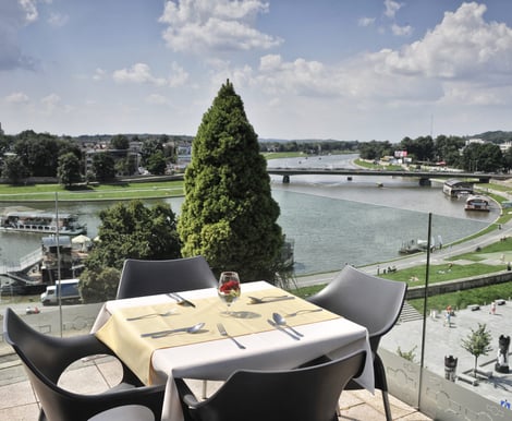 Największym atutem Hotelu Pod Wawelem jest klimatyzowana sala bankietowa na najwyższym piętrze, połączona z jednym z najpiękniejszych tarasów widokowych w Krakowie.