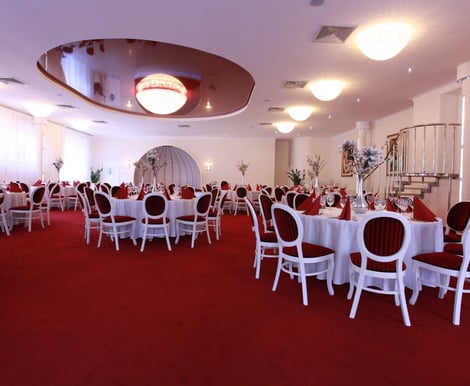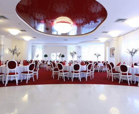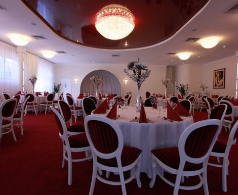 Hotel oferuje kilka przestronnych i stylowych sal, które sprawdzą się zarówno na kameralne obiady ślubne, jak i duże wesela: