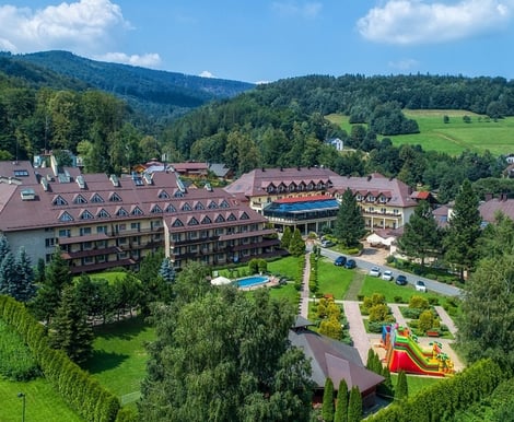Dodatkowo, hotel dysponuje rozległym terenem zielonym, który pozwala na organizację ślubów i wesel w plenerze, w otoczeniu pięknej górskiej przyrody.