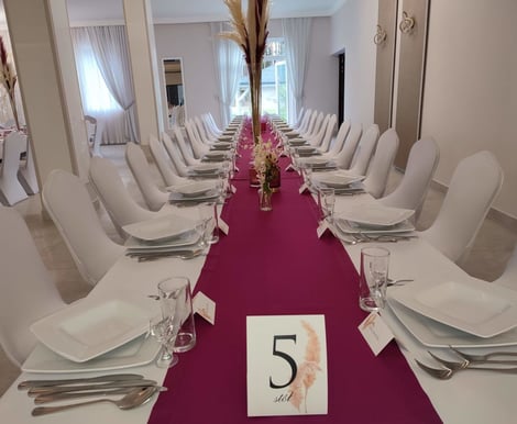 Do dyspozycji Par Młodych jest przestronna, klimatyzowana sala bankietowa, mieszcząca do 200 gości. Nowoczesne wnętrza dają ogromne możliwości aranżacji – od klasycznej elegancji po nowoczesny minimalizm – dzięki czemu łatwo dopasujecie wystrój do swojego stylu i motywu przewodniego wesela.