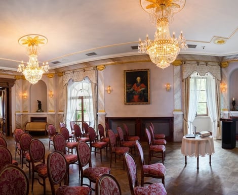 - Sale Zamkowe: Historyczne komnaty i sale balowe mieszczą do około 130 osób. Ich elegancki wystrój i niepowtarzalny klimat sprawią, że Wasze przyjęcie będzie naprawdę wyjątkowe.
