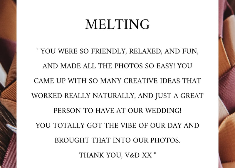 Trends can come in an assortment of ways, whether that’s colour schemes, themes or even up and coming poses for your album – your photographer will be able to give you guidance and suggestions to help keep your wedding both trendy but also uniquely yours.