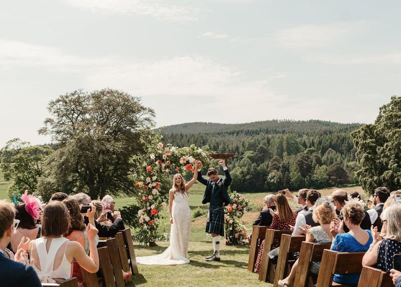 Scottish pride is stronger than ever at the moment, so couples are making sure to embrace as many local wedding traditions as possible, such as by including elements like kilts, bagpipes and ceilidh dancing.